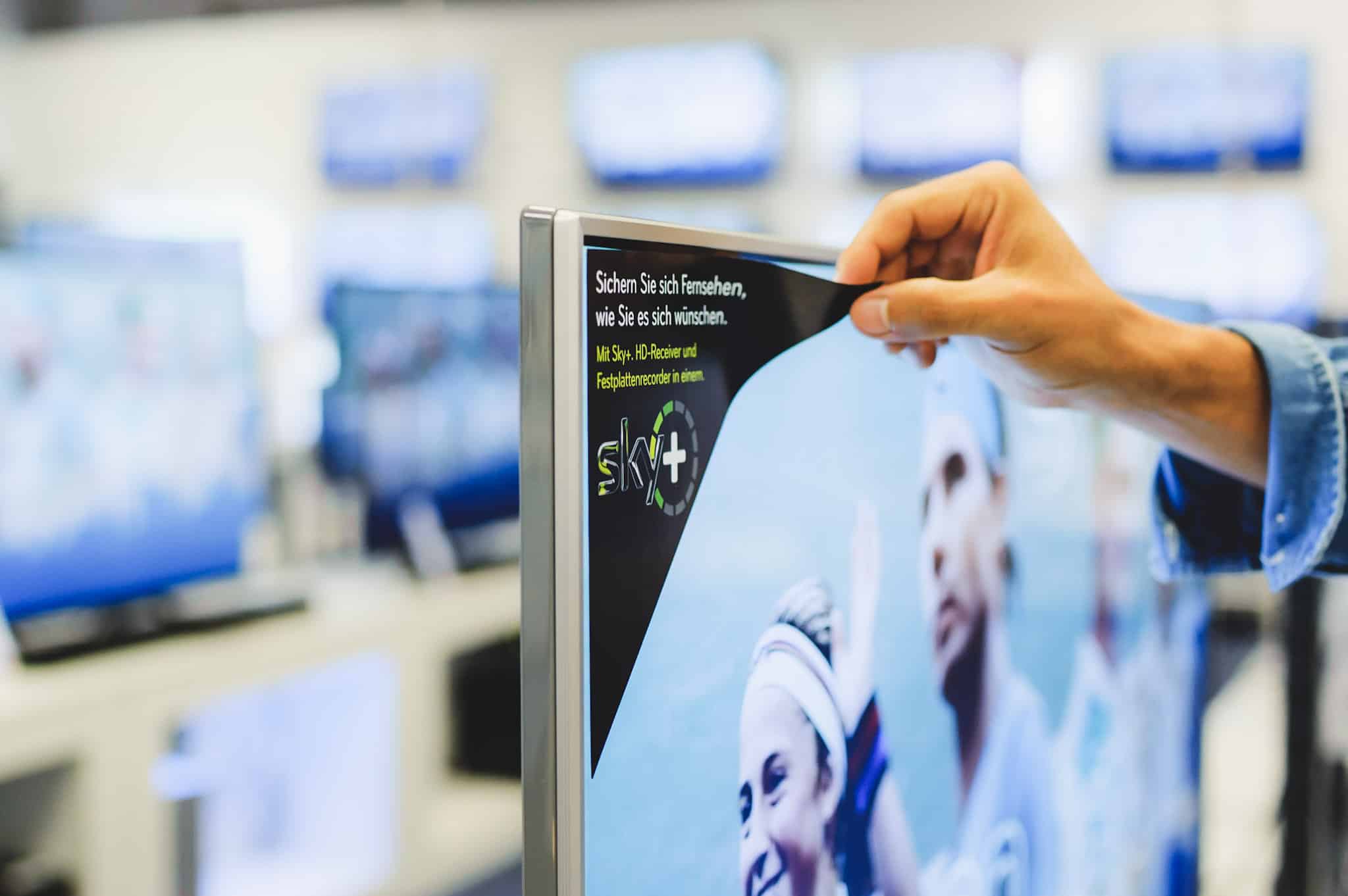 STATIC eignet sich perfekt für kurz- und mittelfristige Werbeaktionen und Dekorationen sowie schnelllebige Kampagnen. Das Material ist für empfindliche Oberflächen wie Fernsehbildschirme geeignet, aber auch für White-Label-Produkte. STATIC ist ideal für Anwendungen im Einzelhandel in den Bereichen Getränke, Tiefkühlkost, Eiscreme, Pharmazeutika und saisonale Werbeaktionen.